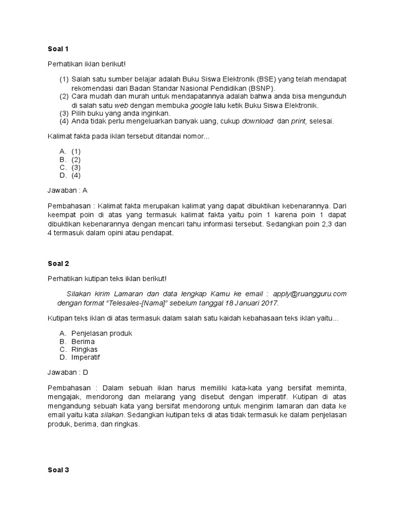 Pdf Ujian Nasional Unas B Indonesia Smp 2012 Haydar Net Academia Edu from 0.academia-photos.com Kalimat fakta pada iklan tersebut ditandai dengan nomor. Membaca iklan bapak tanggal 30 oktober 2013, saya pria lajang yang berpengalaman di bidang kesehatan. Bacalah iklan berikut dengan saksama! Fakta adalah kejadian yang merupakan kenyataan sesuai dengan apa yang terjadi. Dapatkan penjelasan bukan hanya jawaban. Kalimat opini akan berganti status menjadi kalimat fakta apabila kalimat tersebut dapat. Kalimat yang berupa fakta dalam teks tersebut terdapat pada nomor. Kalimat fakta dalam iklan tersebut ditandai dengan.